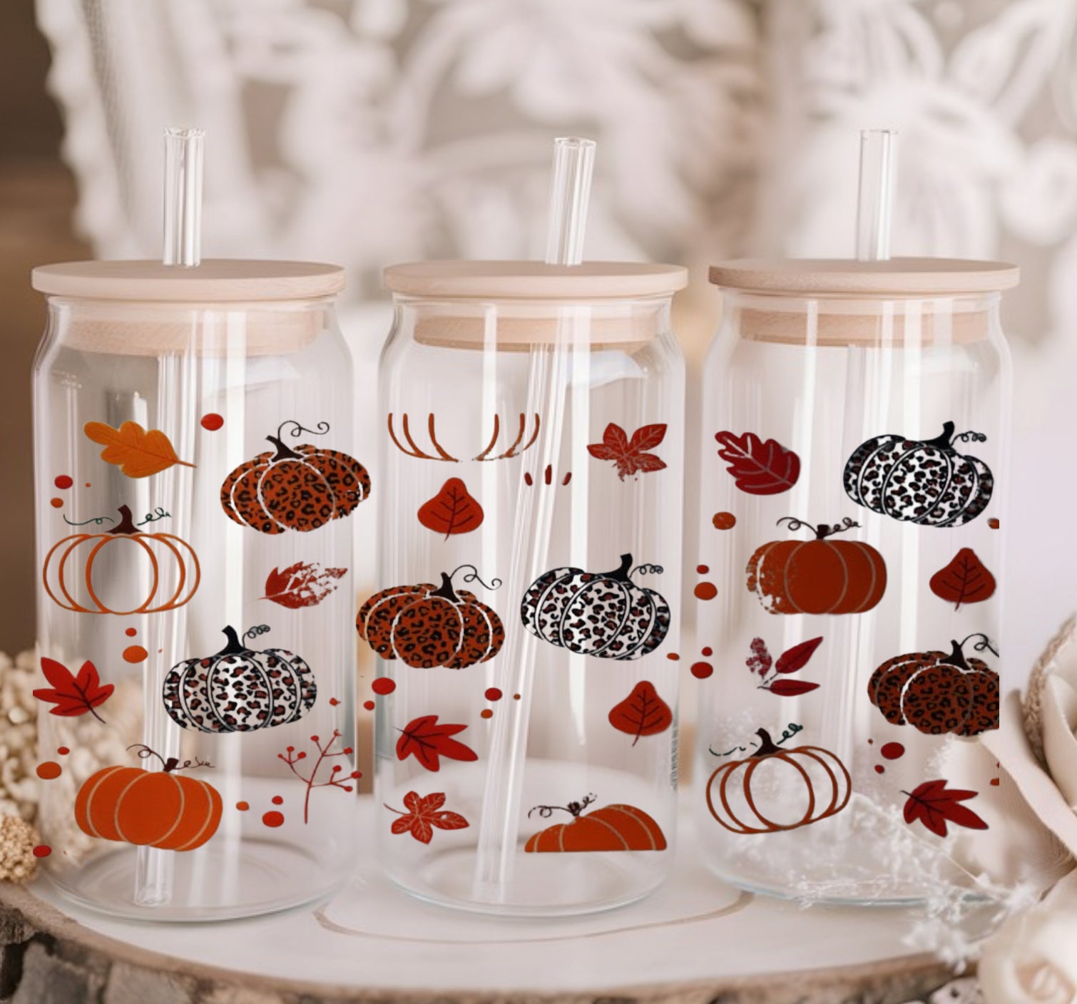 Get into the autumn spirit with this stylish 16oz cup, available in both glass can and stainless steel options. Featuring a trendy mix of leopard print and classic orange pumpkins, along with falling leaves and cozy fall vibes, this cup is perfect for sipping your favorite seasonal drinks. Comes with a bamboo lid and reusable straw, making it both chic and eco-friendly. Whether you’re enjoying a pumpkin spice latte or a crisp apple cider, this cup is a must have for fall lovers!