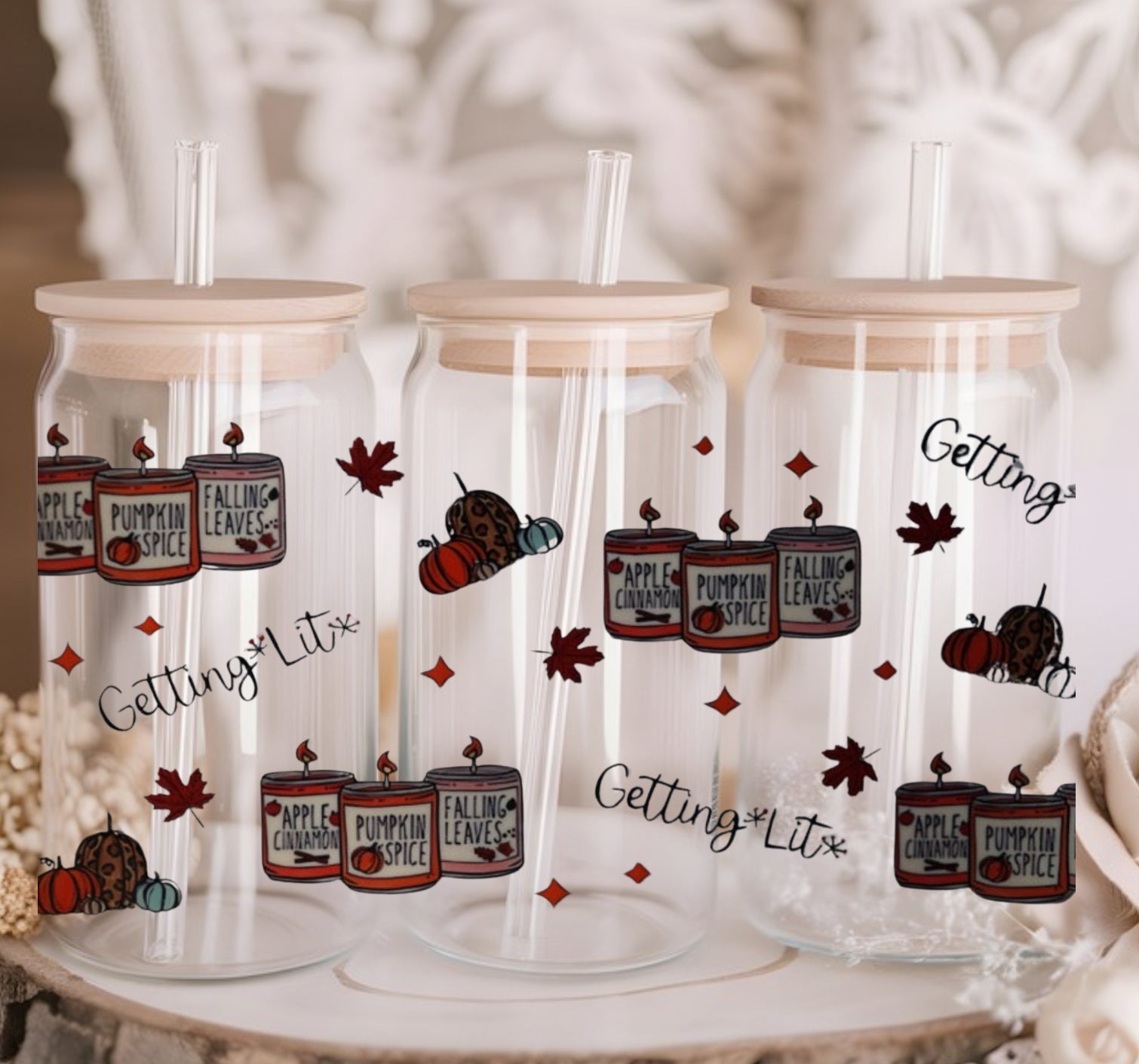 Celebrate the cozy season with this fun and festive 16oz cup, available in both glass can and stainless steel options. Featuring a charming autumn design with candles labeled Apple Cinnamon, Pumpkin Spice, and Falling Leaves, along with cute pumpkins and falling leaves, this cup is perfect for sipping your favorite fall beverages. Complete with a bamboo lid and reusable straw, it’s a stylish and eco-friendly choice for all your pumpkin spice and apple cider cravings. Perfect for personal use or as a seasonal gift for any fall lover!