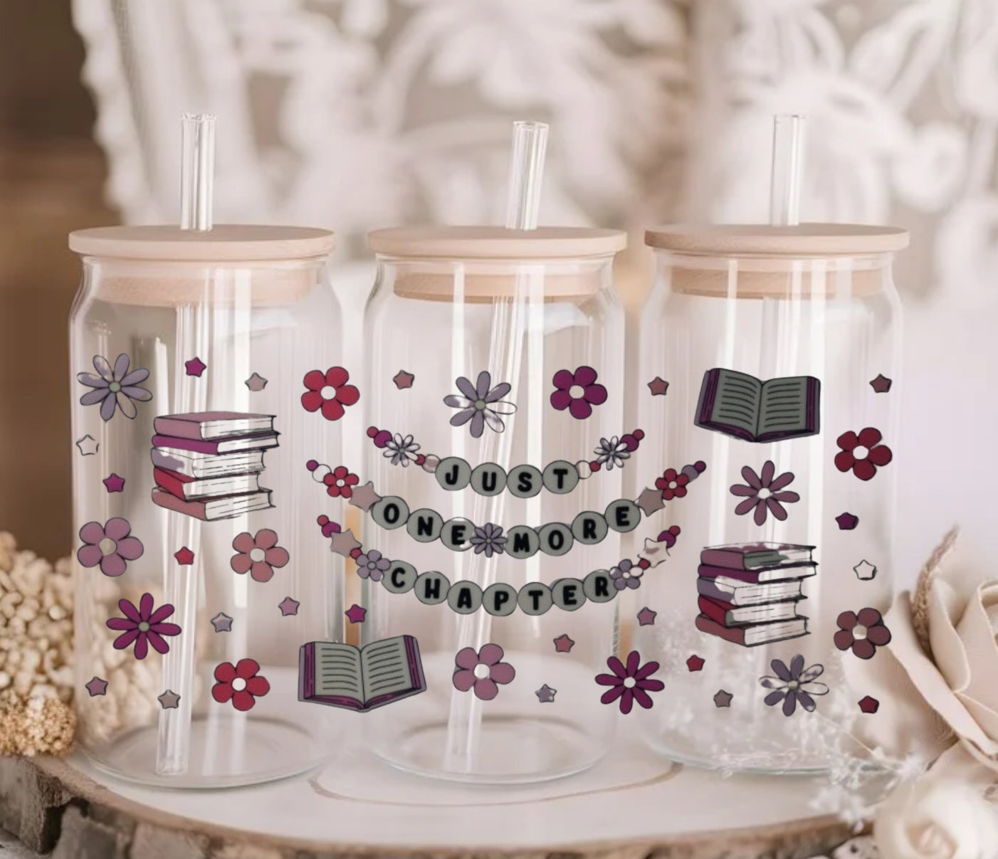 Perfect for book lovers, our 16oz Just One More Chapter cup is available in both glass can and stainless steel options. Featuring charming floral and book-themed designs, this cup is ideal for cozy reading sessions with your favorite beverage. Comes with a bamboo lid and reusable straw, making it great for hot or cold drinks. A must-have for any bookworm who can never put their book down!