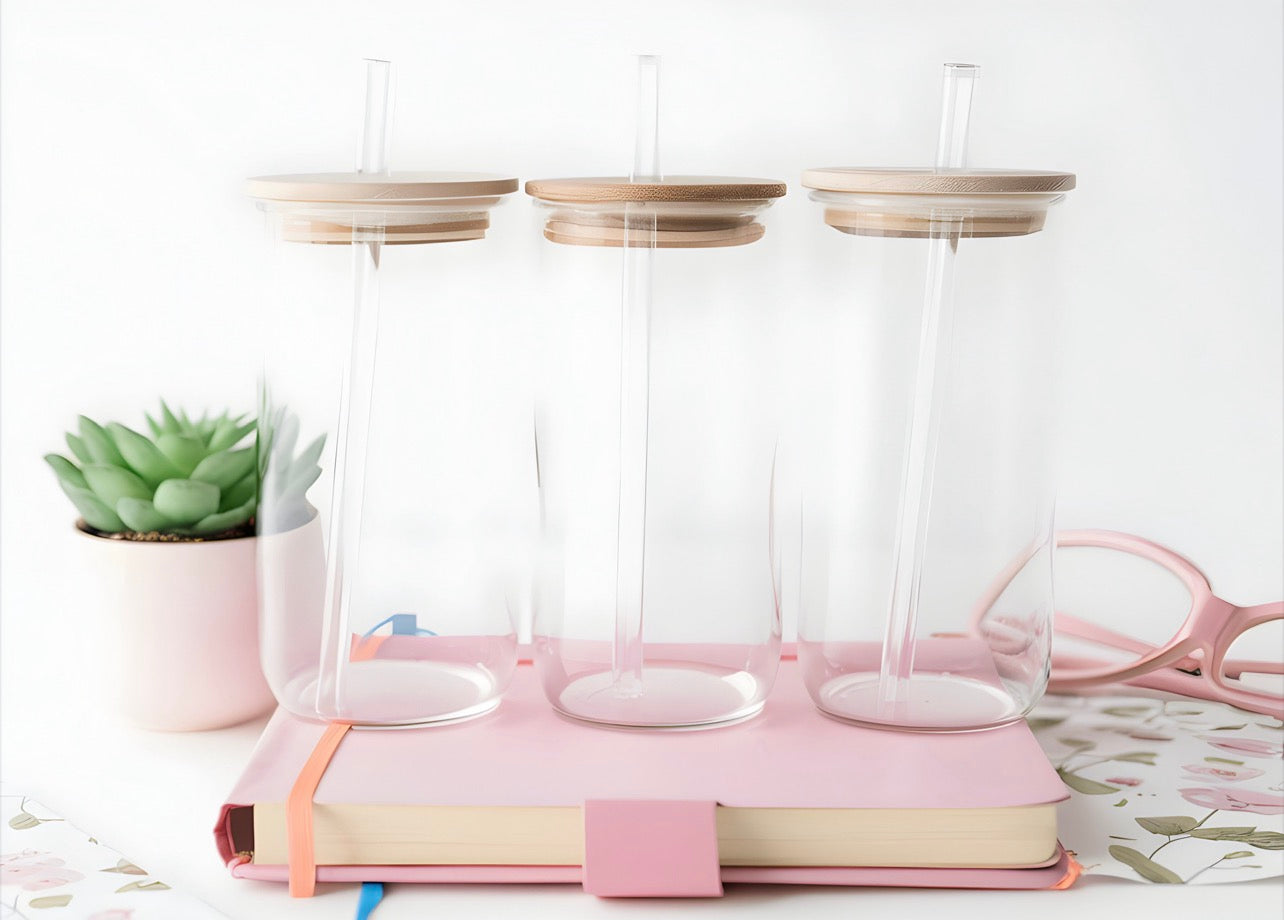 Ready to start creating your own custom cups? Our Starter Kit is the perfect way to begin! This bundle includes 3 glass cups, each with a lid and straw, plus 3 UVDTF wraps of your choice giving you the freedom to design and personalize your cups your way.